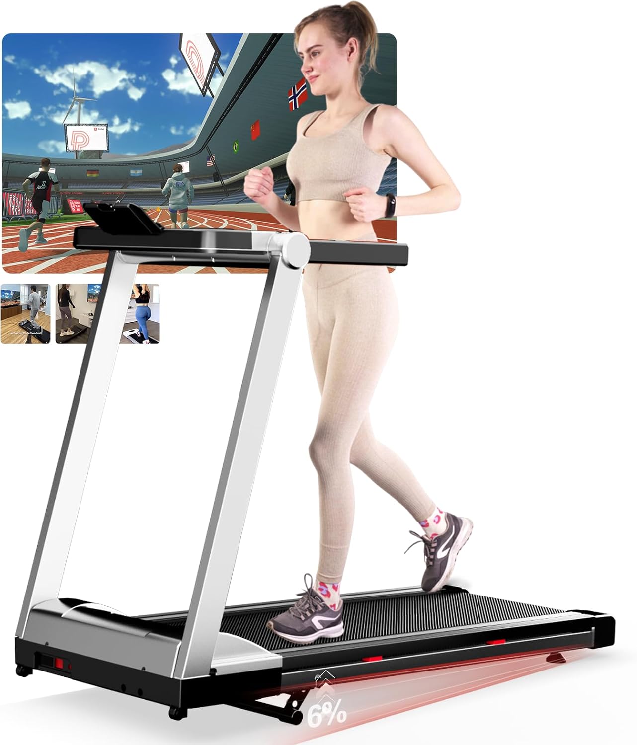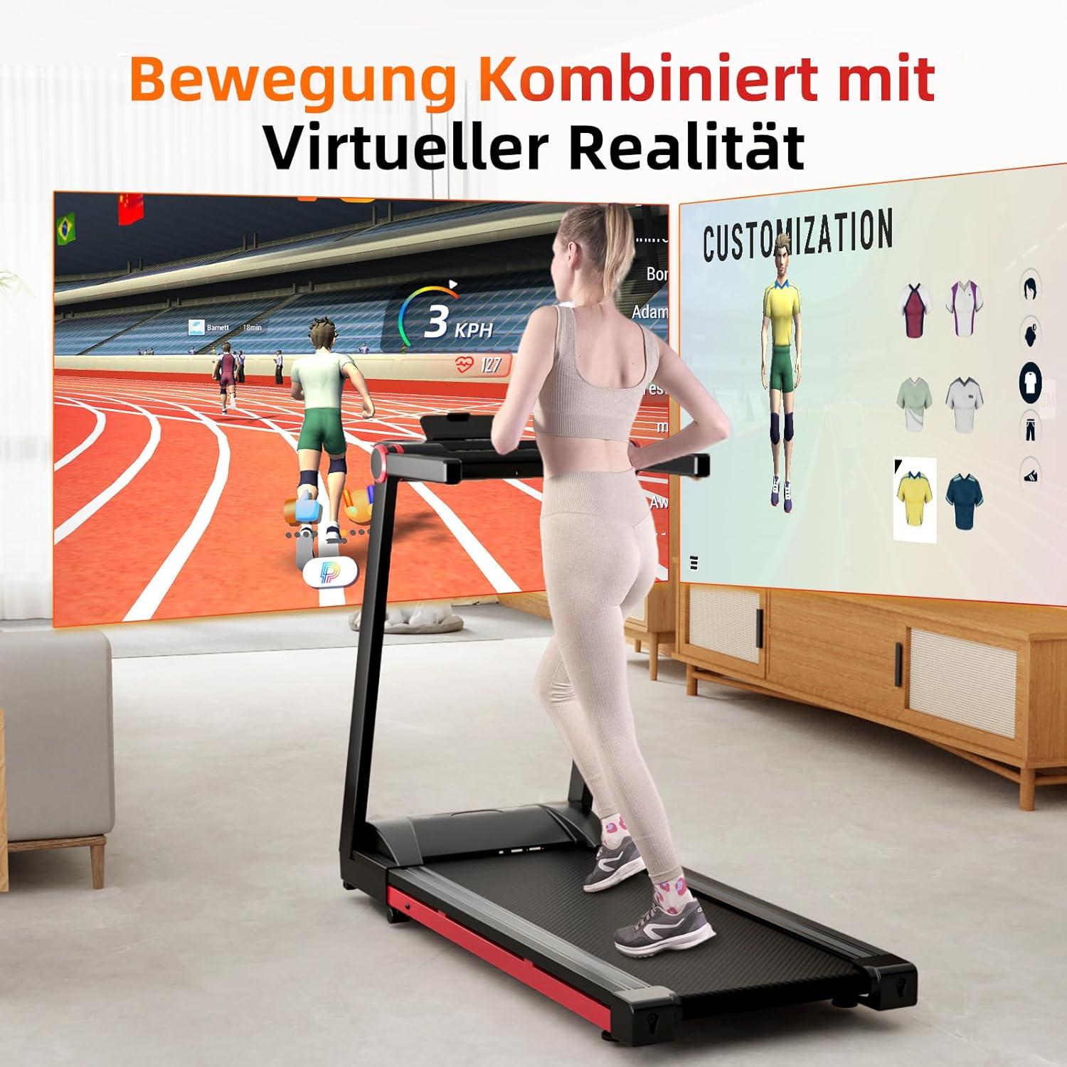 - Angepasst an tragbare High-Tech-Geräte: Superun Laufband für Zuhause Klappbar, das für tragbare High-Tech-Geräte geeignet ist und Ihnen ein beeindruckendes Klang- und Bilderlebnis, mehrere Spielszenarien zur Auswahl, Unterhaltung und Fitness gleichzeitig bietet. Gestalten Sie Ihr Training interessanter, indem Sie an Multiplayer-Laufveranstaltungen teilnehmen und gleichzeitig gegen Läufer aus der ganzen Welt antreten.