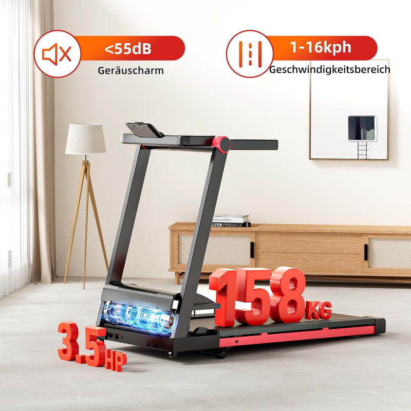 - Leistungsstarker und Leiser Motor: Superun Laufband für Zuhause Leise ist mit einem leistungsstarken 2573-W-Motor ausgestattet, der eine Tragfähigkeit von 158 kg bietet. Der Hochleistungsmotor bietet Geschwindigkeiten von 1-16 km/h und erzeugt nicht mehr als 55 dB Lärm, mit niedrigem Geräuschpegel für ein leises und komfortables Training.