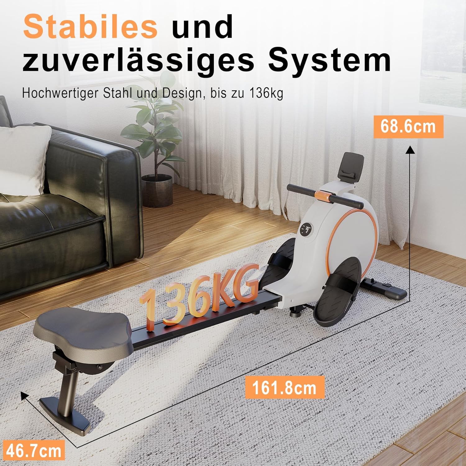 - 32 Stufen Einstellbarer Magnetwiderstand: Gestalten Sie Ihr Training mit dem 32-stufigen Magnetwiderstand des Rudergeräts für Ihr Heim-Fitnessstudio individuell. Der rutschfeste Griff und die ergonomischen Fußstützen sorgen für Komfort, während der gepolsterte Sitz und die glatte Schiene ein gleichmäßiges, angenehmes Training ermöglichen, das Ihre gesamte Körpermuskulatur trainiert.