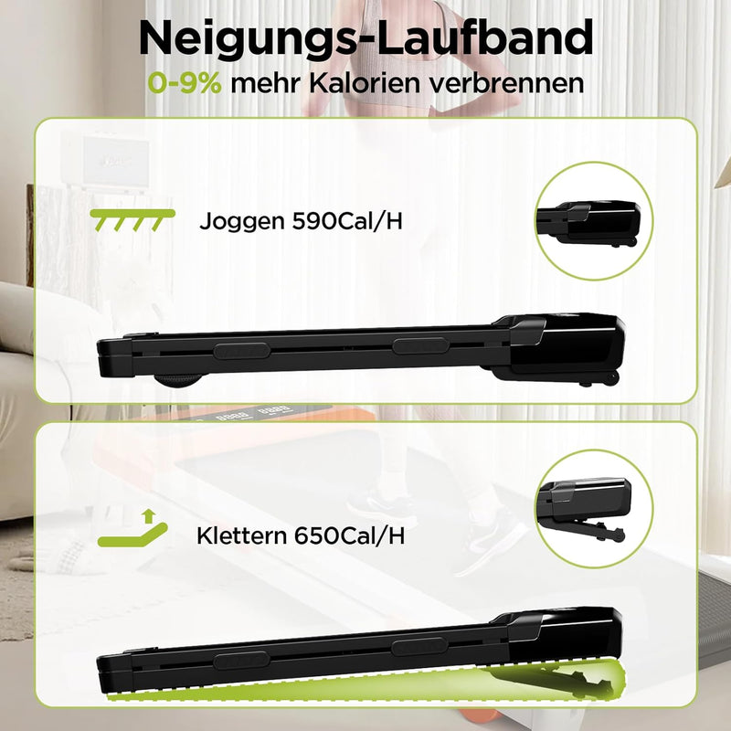 - Walking Pad mit 9 % Steigung: Mit einer Steigungsoption von 9 % simuliert das Gehen auf unserem Laufband einen sanften Hügel für intensivere Geheinheiten. Es ist perfekt, um die Straffung von Beinen und Hüften zu verbessern und die Effektivität Ihres Trainings um bis zu 60 % zu steigern.
